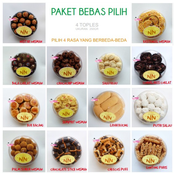 PROMO Paket Kue Kering Paket toples kecil bebas pilih 4 toples Kue Wisman Lebaran Natal Imlek Sincia (Sumber : Shopee, Link : https://shopee.co.id/PROMO-Paket-Kue-Kering-Paket-toples-kecil-bebas-pilih-4-toples-Kue-Wisman-Lebaran-Natal-Imlek-Sincia-i.10372307.287152653)